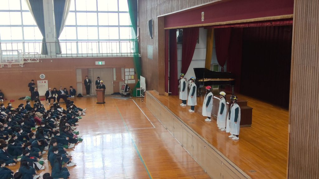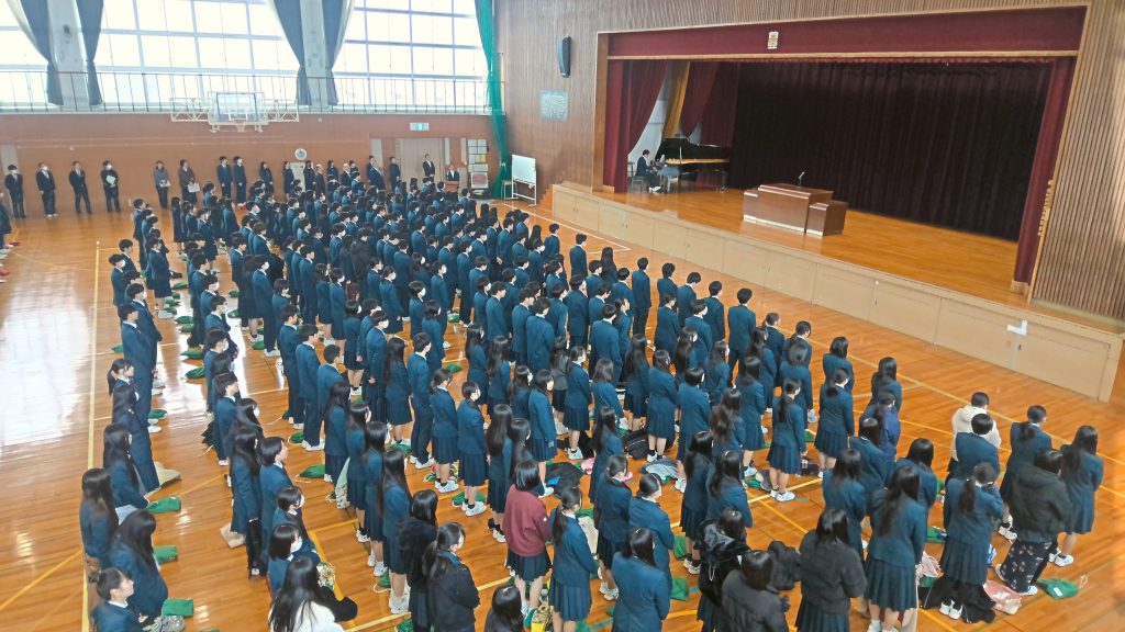お知らせ/学校生活 3学期始業式 2026年1月7日 令和8年となりました。本日3学期始業式が行われました。 ユタカ戦隊ヘルメンジャーの披露もありました。 4月からは交通法規も変ります。自転車に乗るときはにはヘルメットをかぶりましょう。