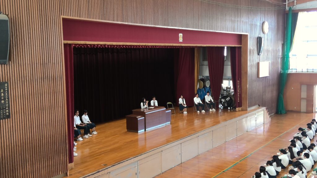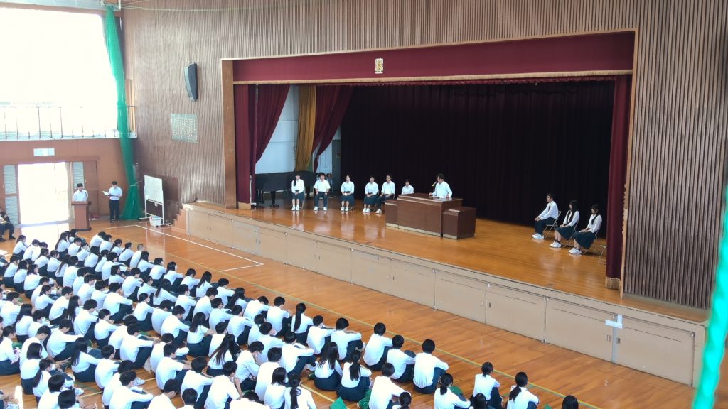 その後、後期生徒会役員選挙が行われました。立候補者の演説を真剣に聞いていました。