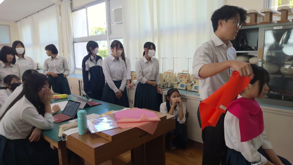 明美文化服装専門学校 田上 洋司先生を講師にお迎えして生活文化科2年生ファッションコース19名対象にパーソナルカラー講習会を行いました。