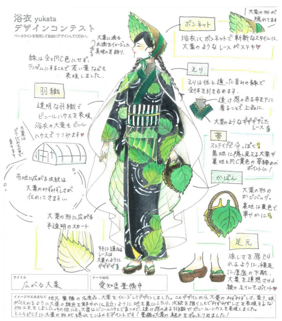 豊橋をの大葉をテーマに浴衣をデザインし、493点の応募の中から入賞しました!